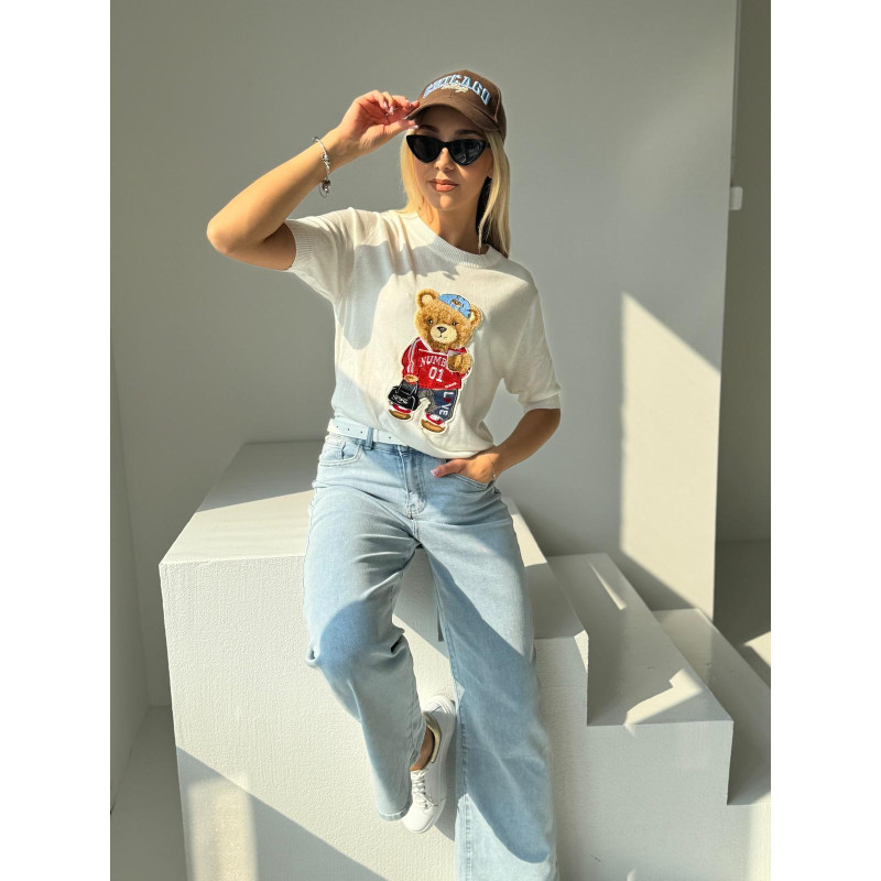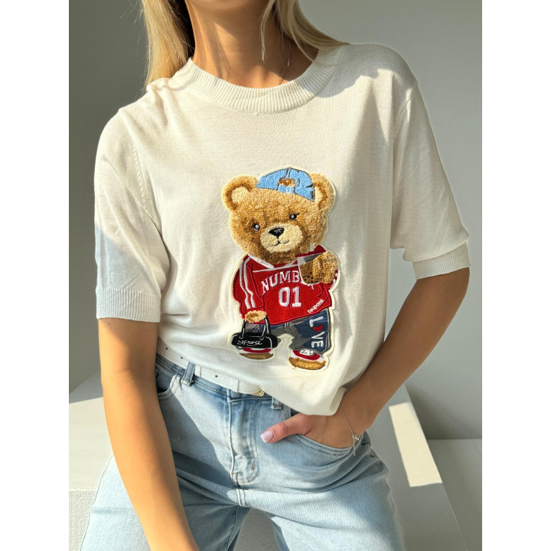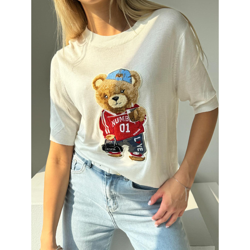 T-shirt z uroczą aplikacją misia. Z przodu znajduje się efektowna, haftowana aplikacja misia w streetwearowym stylu w czapce i sportowej stylizacji.