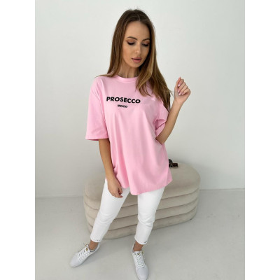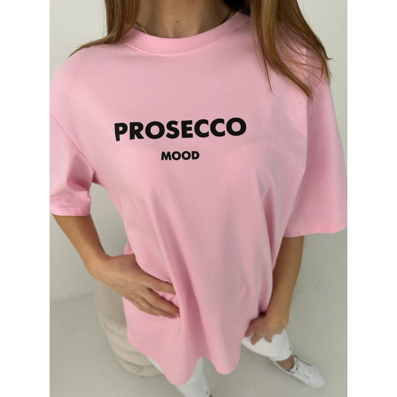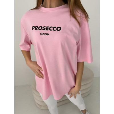 T-shirt oversize ze stylowym nadrukiem "PROSECCO MOOD" dodaje jej wyjątkowego uroku. Klasyczny t-shirt z krótkim rękawem to nie tylko element ubioru, ale również wyraz swobody i świeżości stylu.