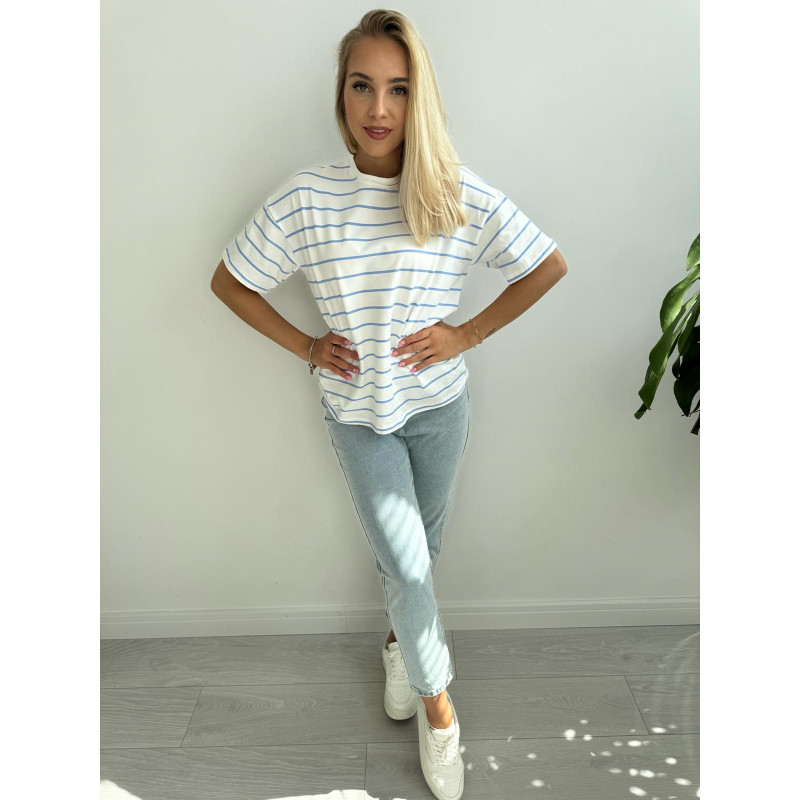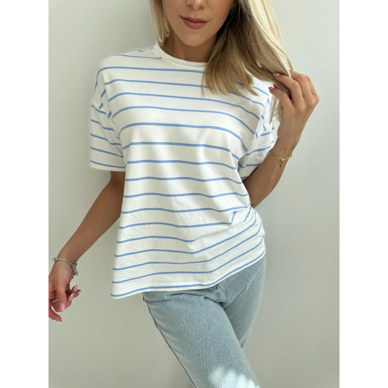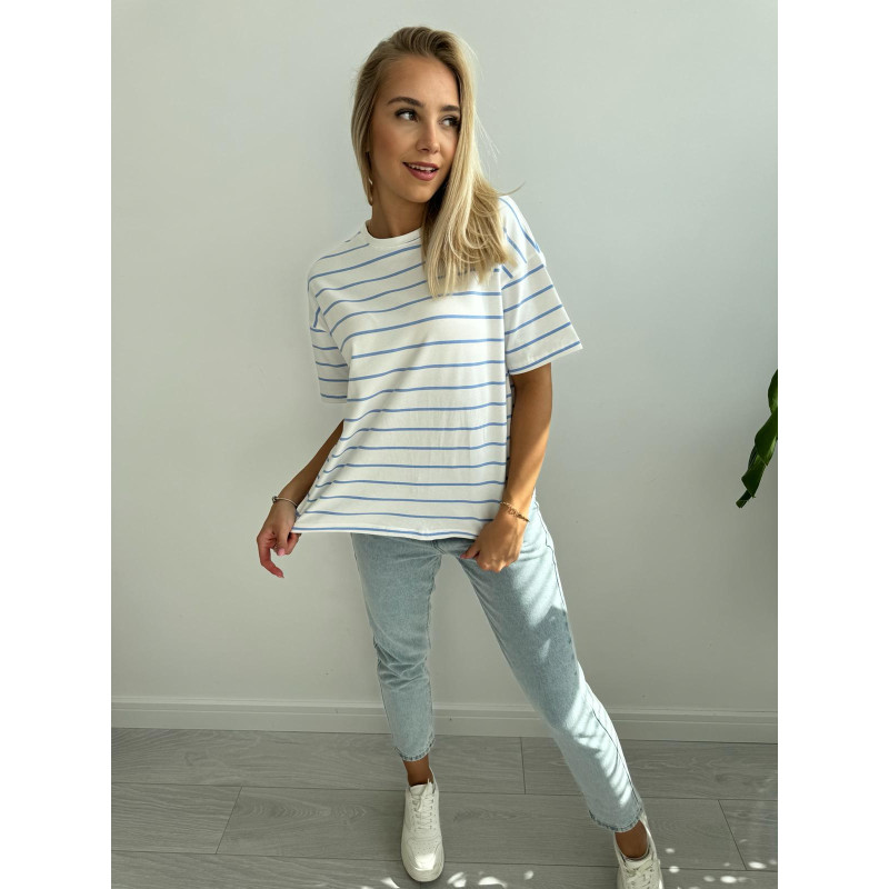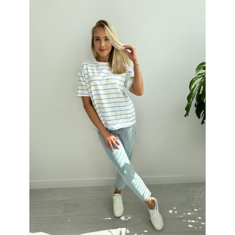 T-shirt STRIPES - klasyczny, bia艂y kolor bazy po艂膮czony z cieniutki, b艂臋kitnymi paseczkami - mega modny wz贸r tej wiosny!