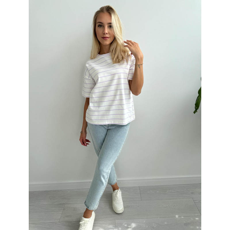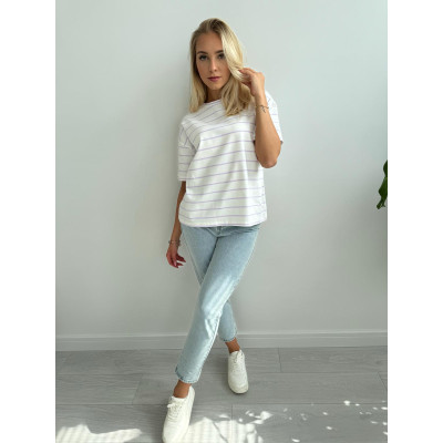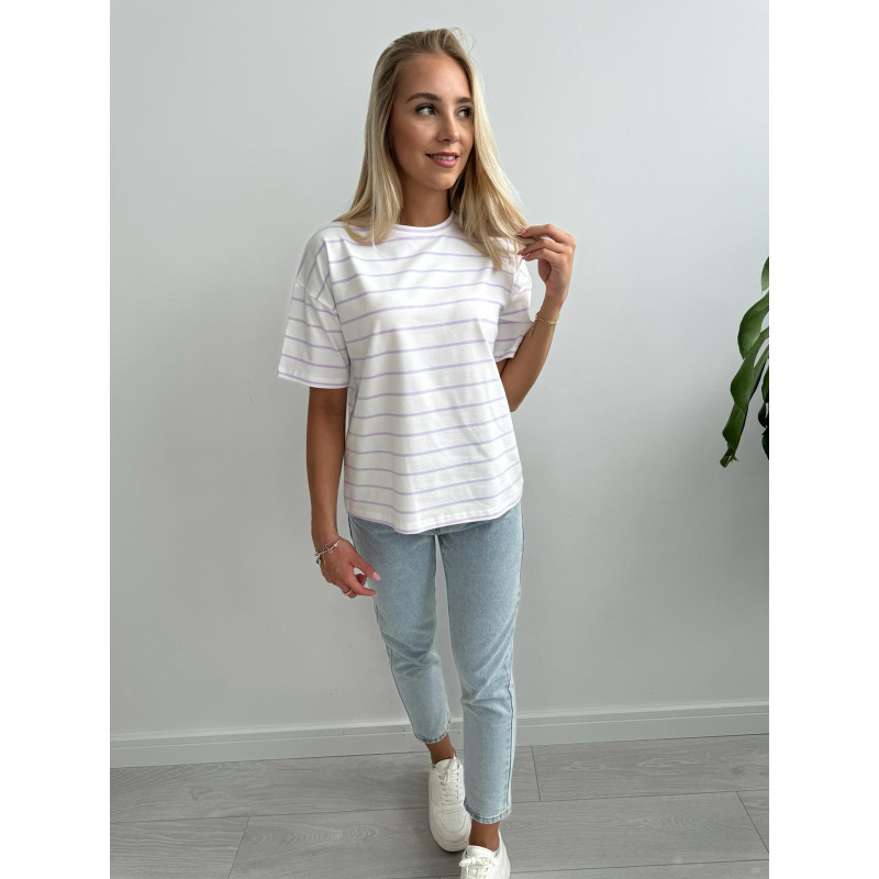 T-shirt STRIPES - klasyczny, bia艂y kolor bazy po艂膮czony z cieniutkimi paseczkami w odcieniu nasyconego, neonowego r贸偶u - mega modny wz贸r tej wiosny!